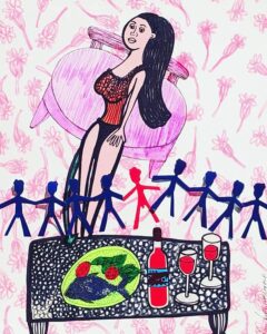 Los Amores en mesa es una maravillosa colección de pinturas y dibujos de esa cocinera, quizás la mejor del país, y artista plástica mendocina que se llama Patricia Suárez Roggerone.