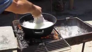 En un cuenco batid hasta su punto cremoso un mejunje de harina de Castilla, es decir de trigo, cerveza clara o roja, mostaza – si es al estilo de Dijon mucho mejor -, algo de paprika, sal y pimienta a gusto…