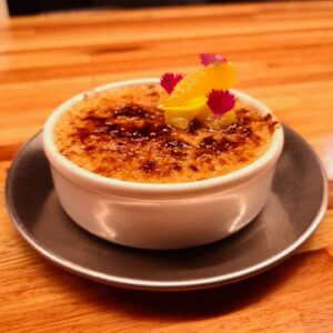 Y después sí llegó el postre a compartir una Crema quemada de castañas infusionada con cítricos.