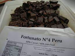 Pearson o Horsley inspeccionan las vainas y se aseguran de que contengan la proporción correcta de semillas blancas. Luego se extraen a mano y las compran a los agricultores, pagando casi un 50 por ciento por encima del precio del mercado local para apoyar su trabajo.Las semillas viajan después varios kilómetros hasta la fábrica de Marañón Chocolate, primero en burro y después en moto.Son secadas y fermentadas antes de ser enviadas a Suiza, donde se procesan con una máquina antigua que sirve para hacer chocolate líquido y crear el producto final: Fortunato número 4.