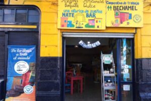 En el tercer aniversario de la Cooperativa Bechamel entrevistamos a su presidenta, Cristina Mangravide, quien contó sobre el trabajo autogestivo que realizan en el barrio porteño de La Boca. Señaló que el producto pionero es el alfajor, pero que también hacen otras cosas, como remeras y bolsas de cartón serigrafiadas, llaveros y muchas cosas más que ofrecen en el local.