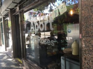del control ruso sobre el territorio. Su mamá no quería que fuera a la batalla. “Rusia siempre está en alguna guerra”, dice Sergei. Nació en Kazajistán, habla muy bien español, y es dueño de Aport, su propio bar en Almagro, que funcionó como eje formativo del grupo de amigos. Aport es un tipo de manzana que crece en Almaty, Kazajstán, y alma significa manzana. En la entrada de la cantina cuelga una bandera, aunque no es la de Rusia. “Para expresar mi solidaridad con el pueblo ucraniano”, justifica el paño azul y amarillo