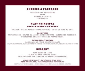Otros tiempos, otros vientos. Sin revisitas de parrilladas y esas cosillas del bien querer, del goce por el menú de los argentinos. Sí por suerte hoy pueden saber sobre lo que sigue en la vieja Francia, allí en la frontera con Italia, hasta con sus precios en euros y traducidos en pordioseros pesos nuestro (al oficial y al día 7 de julio de 2023; porque si los consideran a esa cotización que le dicen blu, los precios a leer en el próximo párrafo deberán ser multiplicados casi por dos).