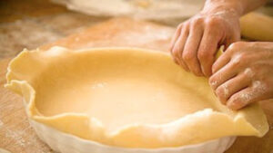 Trescientos gramos de harina común, ciento cincuenta de manteca, una cucharadita de sal y medio vaso de agua fría.
