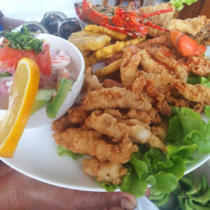 También de Las mejores huecas: Un rico piqueo para compartir. Pescado, camarones, patas gordas de cangrejo, calamar, pulpo…una fritada; todo esto acompañado de patacones (que son rodajas de plátano frito), ensaladas y salsas de su preferencia.