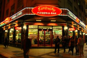 Clarín recuerda los orígenes de Kentucky, cuando era un buena pizzería de barrio, antes de convertirse en marca, franquicia que le dicen, y digámoslo ya, en arma letal para la buena pizza: Kentucky ha recorrido un largo camino desde aquella tarde de 1942, cuando un grupo de amigos, tras años de perder plata en las pistas de Palermo, ganaron el premio Kentucky. Eso sí, tenían muy claro qué hacer con la plata y en la esquina de Godoy Cruz y Santa Fe nació la pizzería.