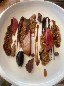 Me hubiera gustado algo más que la combinación de camarones de San Remo, melón, pepino, sandía, con aguachile mexicano (agradable, fresco, efectivo), o la langosta, durazno y espuma de verbena (agradable, fresca, etc….