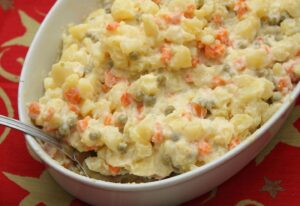 Para este vuestro humilde Peje, una de las Rusas preferidas es con arvejas frescas, nunca enlatadas, papines de varios colores, zanahorias modositas, aceitunillas en verde y negro, sal, pimienta negra recién molida, beso de aceite de oliva y mayonesa batida con la enjundia que ella, la Rusa, merece…