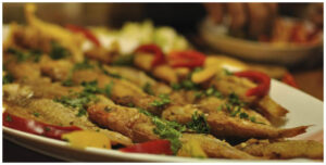 La cercanía con el mar también favorece el pescado, y los habitantes de Gaza suelen hacer un tahini rojo (crema para untar) a base de semillas de sésamo tostadas.