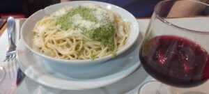 Pues los de Norte son a la porteña, como a la porteña es el pesto de sus tallarines, en los dos casos recomendables y acompañados por un tinto de Bodegas Lopéz – los vinos que nunca fallan-, resultaron artes y partes de un menú a precios más que acomodados.