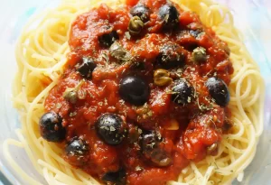 Algunos dicen que la inventó un arquitecto y cocinero amateur llamado Sandro Petti que, a altas horas de la noche, en 1952, un grupo de amigos le exigió que les diera de comer o se iban (hasta ahí lo que cuenta el sitio Cucinare) de noche rumbosa o a la puta madre, vaya uno a saber….Y que el fulano improvisó una salsa con lo que tenía a mano – como suele suceder- y el resultado fue la famosa puttanesca, nombre que sus amigos le pusieron a la feliz creación.