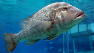 El mero es un pez de cuerpo robusto y redondeado, con una cabeza grande y mandíbulas fuertes que le permiten alimentarse de presas grandes. Su coloración es variable, aunque generalmente presenta tonalidades marrones o verdosas, con manchas o rayas más oscuras en su cuerpo.