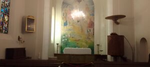 Antes de sentarnos a la mesa un vistazo a la iglesia luterana, sencilla, austera; una suerte de estancia acogedora y cálida que anticipa lo que será el disfrute de la mesa o Smörgåsbord, que justamente es eso, esa mesa amplia de la cual los comensales se sirven a elección y gusto, mientras llegan las botellas de agua que ofrece la casa y el vino solicitado a partir de una carta sencilla.
