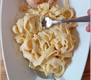Por eso, quiso prepararle un plato nutritivo, unos fetuccini de sémola que grano duro que completó con una salsa de manteca y abundante queso parmesano.,.Es decir, los clásicos fideos con manteca de nuestras mesas infantiles…Tanto le gustaron a la mujer que sugirió que se añadieran a la carta del restaurante.