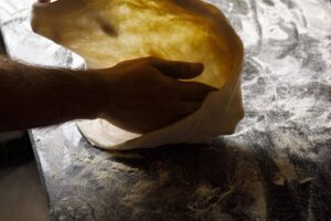 Para ella utilizarán una harina 0 de molienda casi propia, con un marcado contenido en fibra que permite, en la fase de mezcla, una alta hidratación, la principal característica de la masa y del resultado final.
