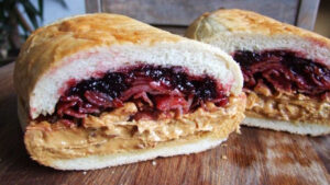 Aparte de estos dos lugares, hay una historia que engrandece la figura gastronómica de Elvis todavía más. El 1 de febrero de 1976, Elvis estaba en Graceland con el Capitán Jerry Kennedy, de la policía de Denver, y Ron Pietrafeso, de la Fuerza de Ataque contra el Crimen de Colorado. Se estaban contando batallitas cuando recordaron un bocadillo que habían tomado en un local llamado Colorado Mine Company. El bocadillo se llamaba Fool’s Gold Loaf (pan de oro de tontos) y constaba de pan de hogaza hueco relleno de crema de cacahuete, mermelada de arándanos y bacon.