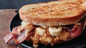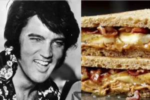 Uno de los platos favoritos de Elvis, y que ha pasado a la historia de la gastronomía, es el denominado “Sándwich Elvis”. Aunque algunos atribuyen la autoría del mismo a Mary Jenkis, ella lo desmintió más de una vez, ya que al parecer Elvis lo probó en una gira y se enamoró perdidamente de esta extraña mezcla: pan de molde, crema de cacahuete, plátano en rodajas, bacon (esto es opcional), y mucha mantequilla.