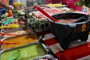 Ya había puestos de comida en los mercados descritos por los cronistas de la invasión. De esos mismos puestos se alimentan muchas veces las personas que trabajan en el propio mercado. Es a ellas a quienes suelo preguntar a dónde o a cuál acudir cuando me encuentro en un recinto en el que nunca he estado y me da hambre o antojo. En esos lugares se puede comer de forma económica y sana, con productos del día. La oferta va desde platos tradicionales y de temporada, hasta clásicos del recetario popular mexicano como nopales rellenos, cerdo con verdolagas, mole verde, sopa de milpa, entre otros. Se trata de alimentos elaborados cada día, con ingredientes frescos, honestos y deliciosos.