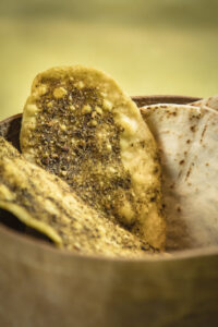 Pan con Zaatar: Una de las formas más tradicionales de disfrutar el zaatar es espolvoreado sobre pan plano con un chorrito de aceite de oliva. Este pan, conocido como «manakish», es un desayuno común en muchos países de Medio Oriente.