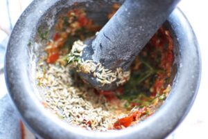 Dejar que la charmoula repose a temperatura ambiente durante aproximadamente una hora antes de servirla para que los sabores se mezclen.